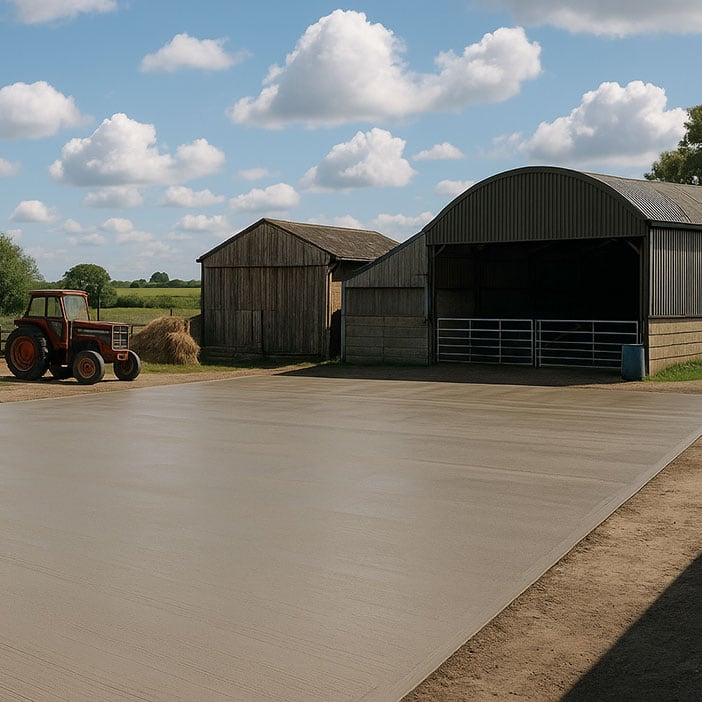 RC45 + Poly Fibres is a high-performance concrete specifically designed to withstand aggressive agricultural environments. When combined with poly fibres, this mix offers enhanced resistance to chemical interactions from environmental exposure. Its high compressive strength also makes it suitable for supporting the use and storage of heavy machinery.